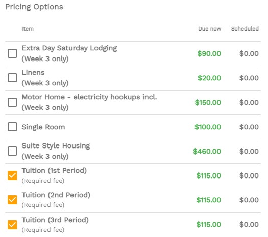 Annotation: To ensure correct pricing when selecting classes across Traditions Weeks, please complete enrollment for each pupil's classes in the aforementioned enrollment.