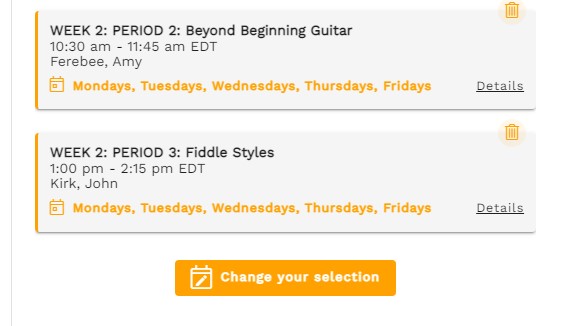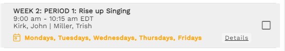 Classes run Monday-Friday. All classes are listed in Eastern Daylight Time.